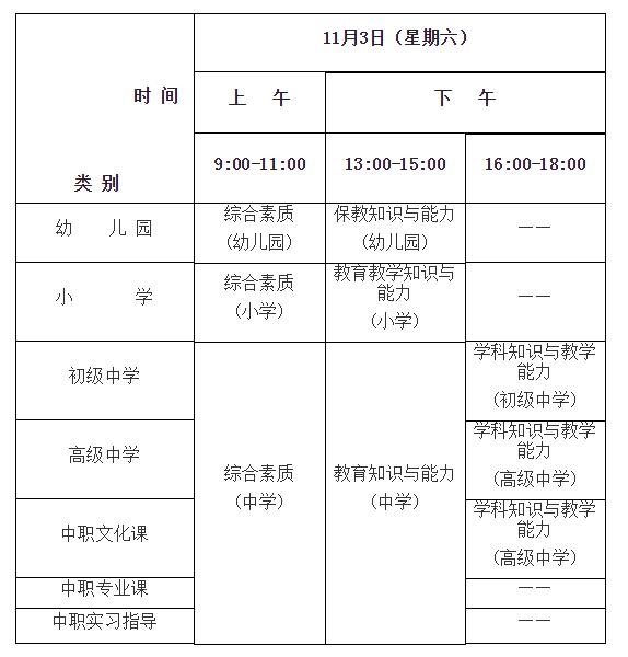 在报名过后,就需要了解考试时间了:2018下半年教师资格证笔试时间为11月3日(星期六)。