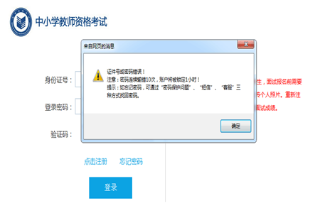 二、如果考生输错密码10次,账号会被锁一小时。具体如下图: