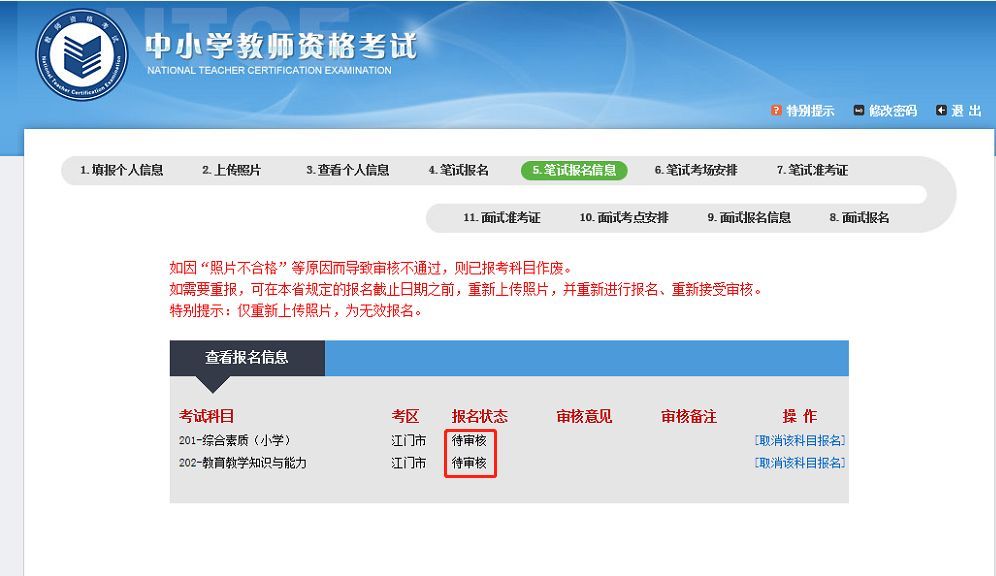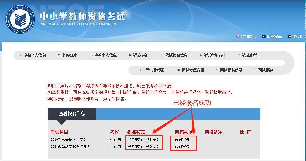 如果是因为"照片不合格"等原因造成审核不通过,需要重新登录报名系统修改个人信息,需要重新接受审核,否则为无效报名。