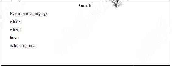 Show several pictures of the famous golf player Tiger Woods, the musician Mozart, and the great Brazilian soccer player Ronaldo when they are young, and let students guess who they are, then the teacher tells students that they started doing their interest in a young age. Then lead the topic of the class.