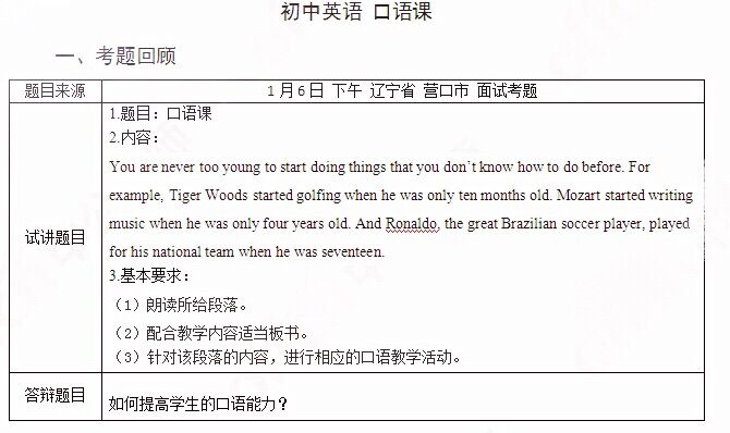 点击可查看:上海2017下半年中学教师资格证面试真题及答案汇总