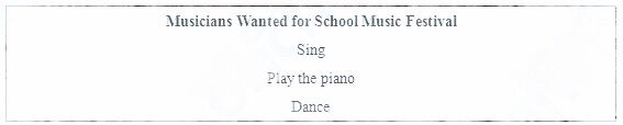 4) Let’s take a look of today’s class: musicians wanted for school music festival.