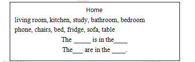 1.Show the pictures of living room, kitchen, study, bathroom, bedroom and the things in living room, kitchen, study... such as phone, chairs, bed, table and so on. Students say the English name.