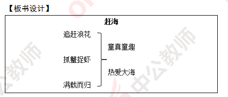 总结:这一自然段讲舅舅带“我”去赶海。一到海边,我们就看到了一个很动人的情景,“我”兴奋极了,飞跑着追赶浪花。(板书:追赶浪花。)