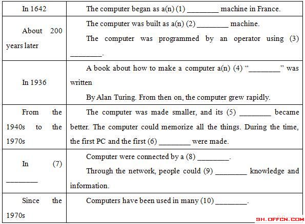 (Suggested answers: calculating, analytical, cards with holes, universal machine, memory, laptop, the early 1960s, network, share, ways)