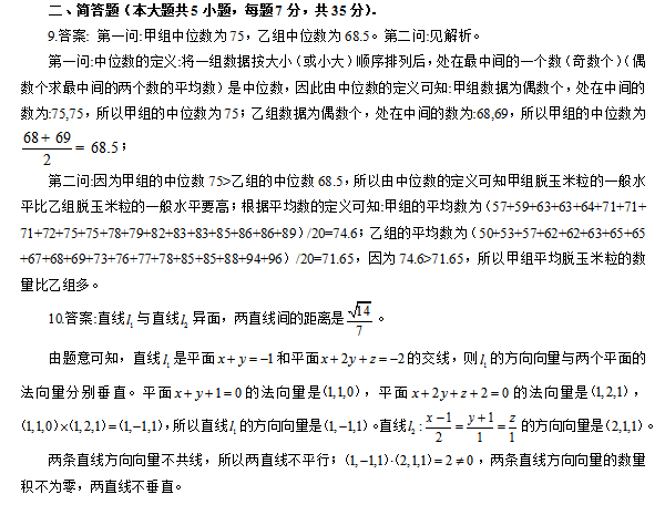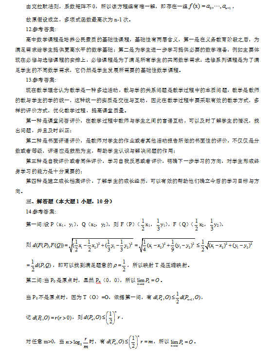 2019上半年上海教资统考高中数学学科知识与能力真题答案