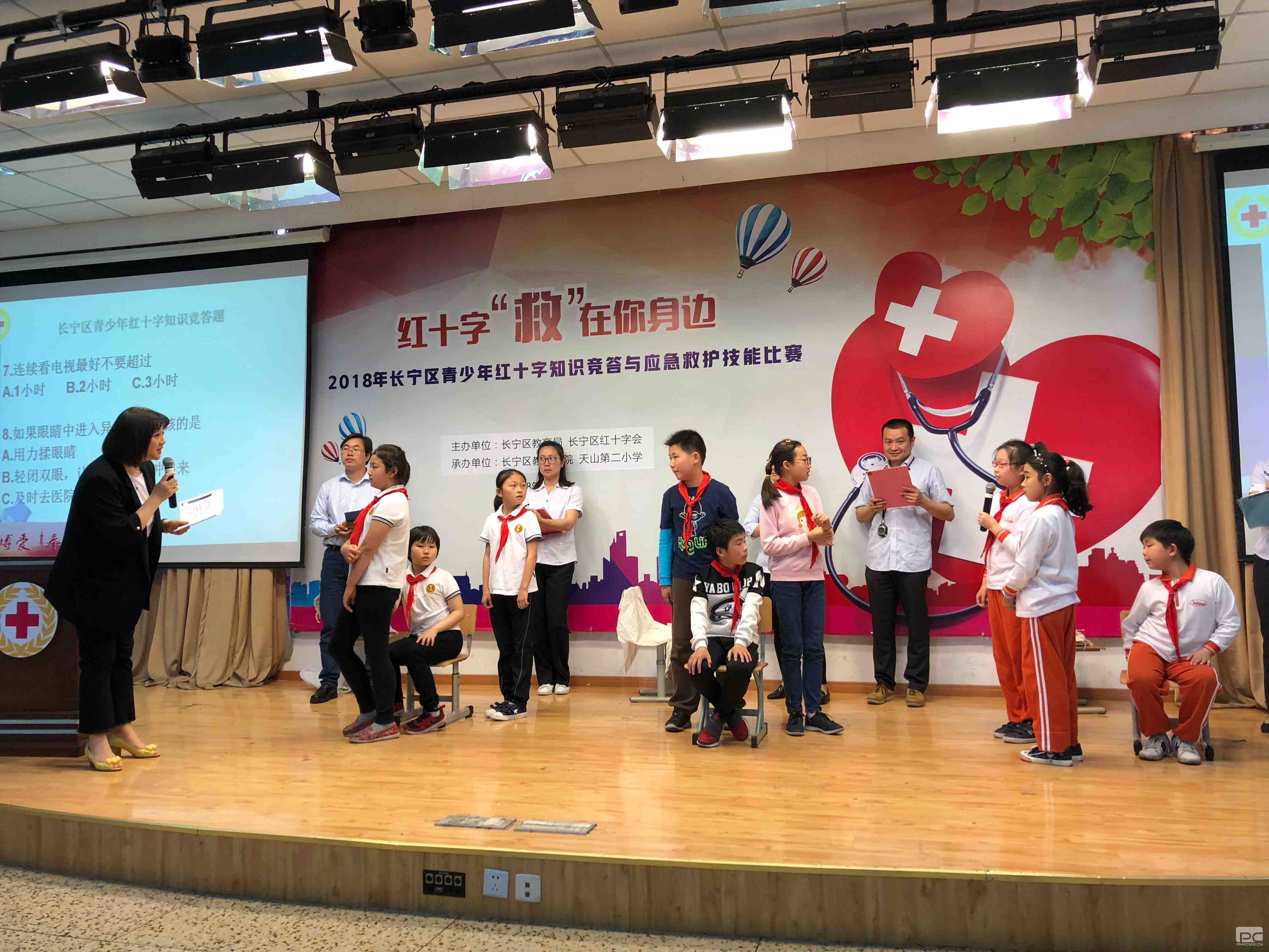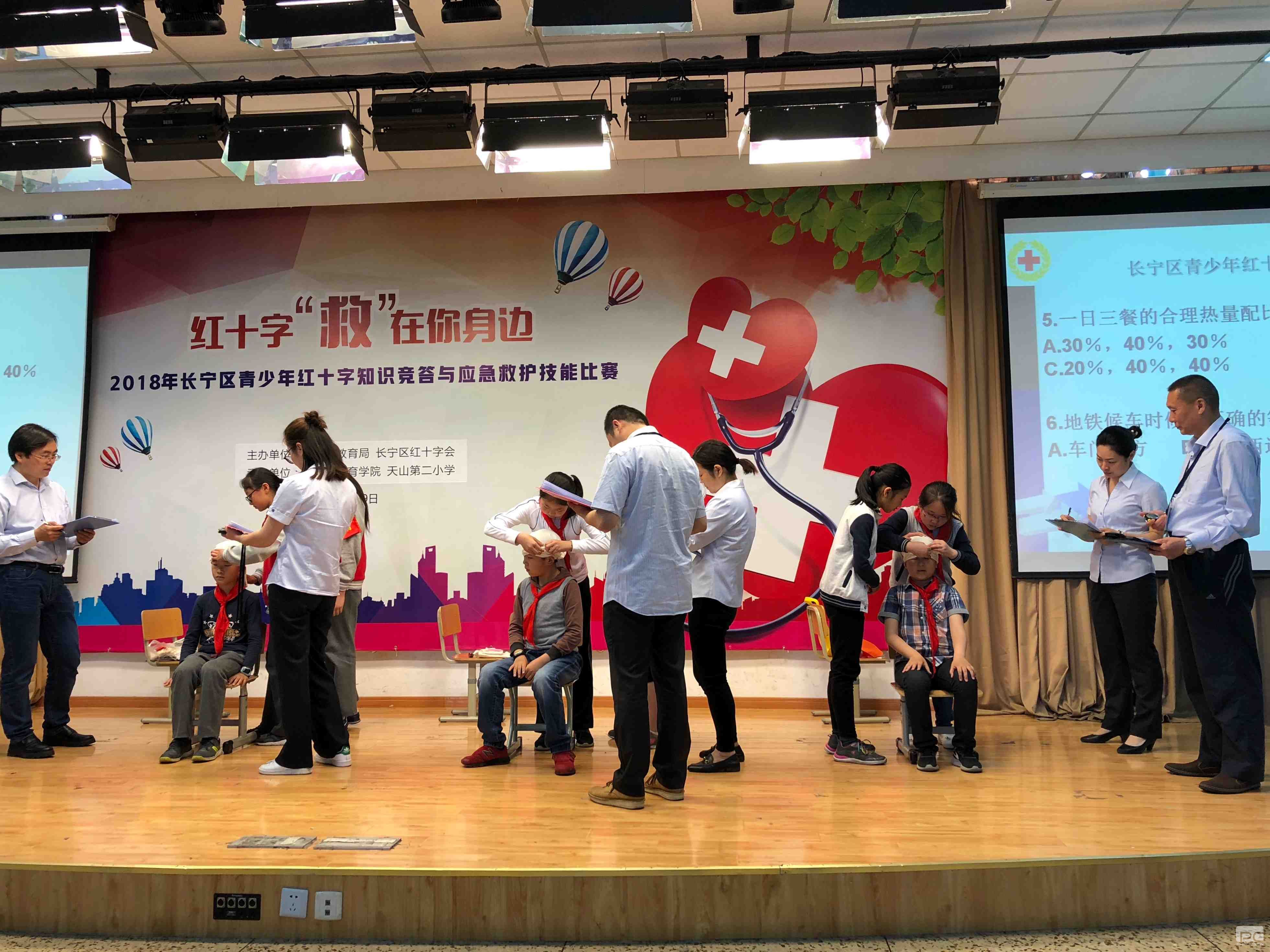 5月9日下午,由长宁区教育局、长宁区红十字会主办,长宁区教育学院、天二小学承办的2018年长宁区青少年红十字知识竞答与应急救护技能比赛(小学组)在天二小学隆重举行,区内23所小学踊跃参加。上海市红十字会赈济救护部部长王子美、长宁区红十字会党组书记、常务副会长吴文沁、长宁区教育学院副院长吕洪波等出席本次活动,长宁区卫生培训中心的老师任现场评委。