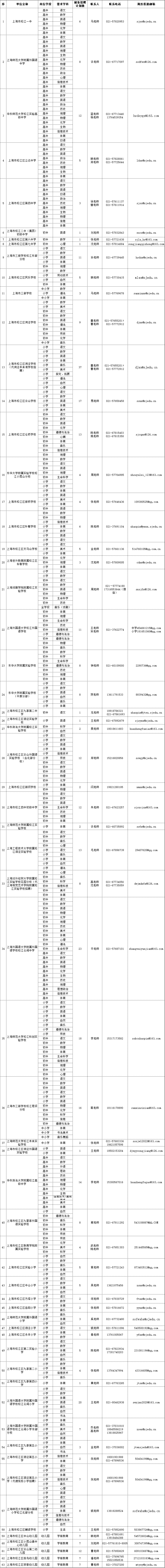 上海市松江区中小学(含高职)事业编和储备教师,以及幼儿园储备教师。具体需求类型、岗位名称及招聘计划数等信息见附件。