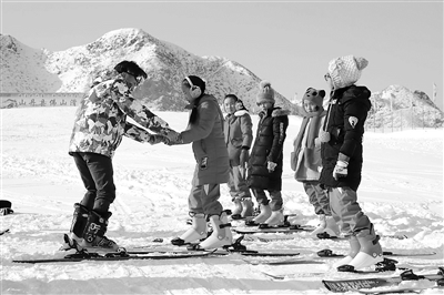 原来,该县的中小学生正在滑雪教练指导下学滑雪。蔚蓝的天空,洁白的滑雪场,身着彩色滑雪服的孩子们,一阵阵的喝彩声、欢笑声,给寒冬带来了一丝暖意。