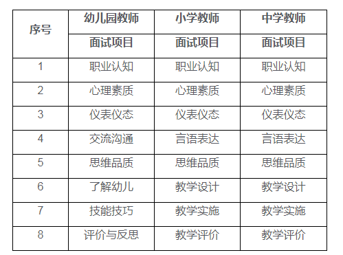 各学段教师资格考试面试项目具体如下(中职教师面试项目同中学教师):