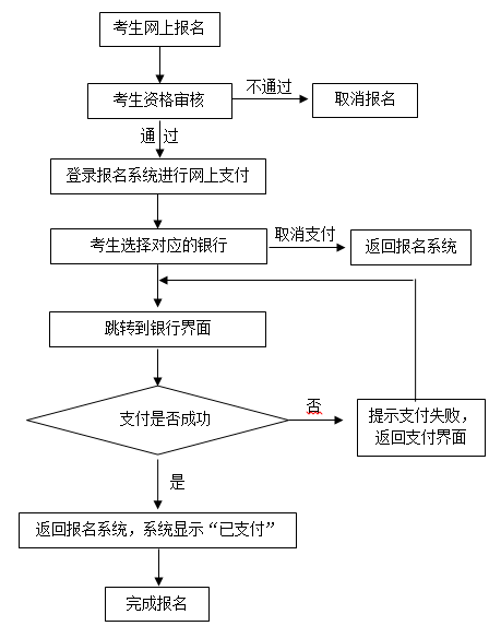 1.考生于9月10日起,登录报名网站,确认报名信息是否审核通过。通过报名信息审核的考生,9月14日前在完成网上缴费,缴费完成后即为报名成功。逾期未在网上缴费者报名无效。